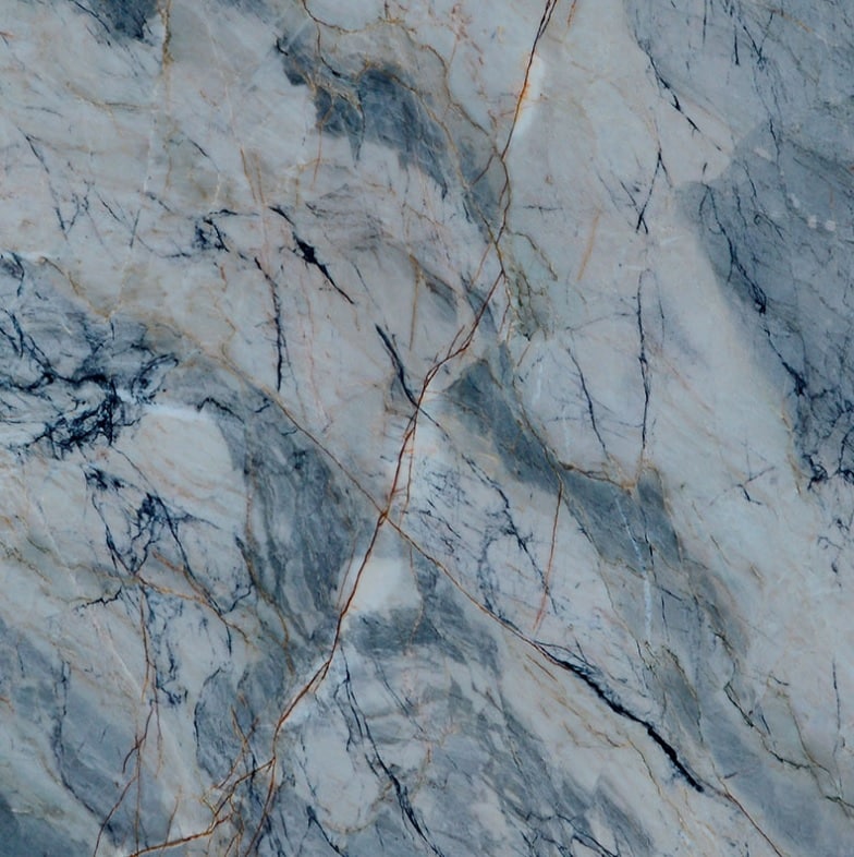 Blue Lava features a captivating fusion of deep blues, sophisticated greys, and icy white backgrounds, accented by dramatic dark blue and vibrant orange veining. This exotic surface evokes the dynamic power of flowing lava and the serene depth of the ocean, creating a bold, eclectic focal point for any interior or exterior space. Known for its exceptional strength and impressive resilience, it offers a luxurious aesthetic that is highly resistant to heat, scratches, and stains, making it a perfect choice for high-use areas like kitchen islands and bathroom vanities.